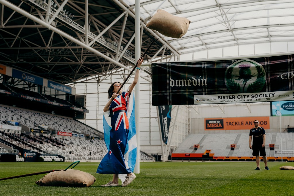 On 1 March this year, the Dunedin Edinburgh Sister City Society supported a corporate event, hosted at Forsyth Barr Stadium. With the help of volunteers, Strongman Reife Cox, and Bagpiper Stuart Oliver, we showcase some iconic Scottish Activities, inviting our audience to take part – which they did, and without injury!